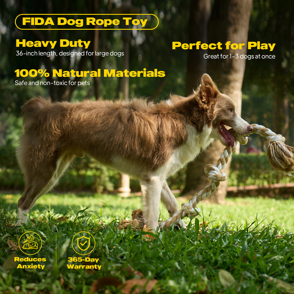 - Heavy‑Duty Build – Five reinforced knots in a 36″, 750 g design stand up to strong chewers.